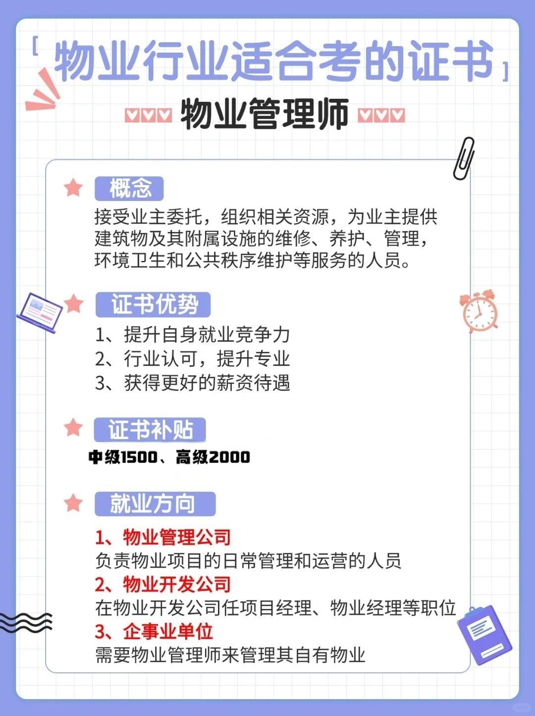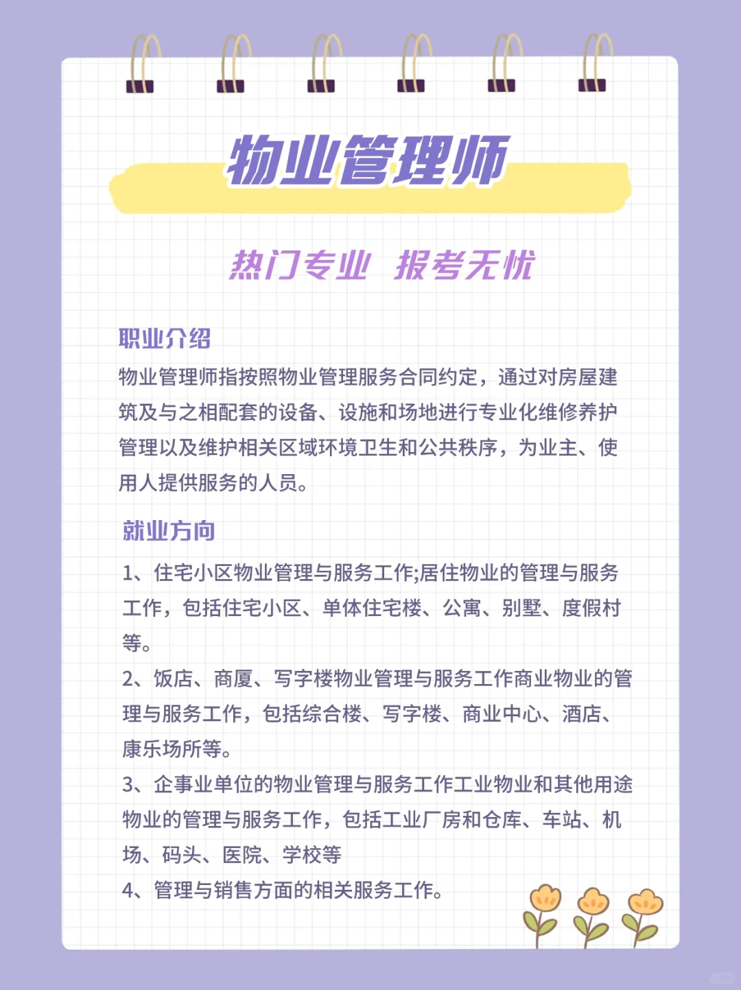 注:图片为物业管理师相关专业及职业