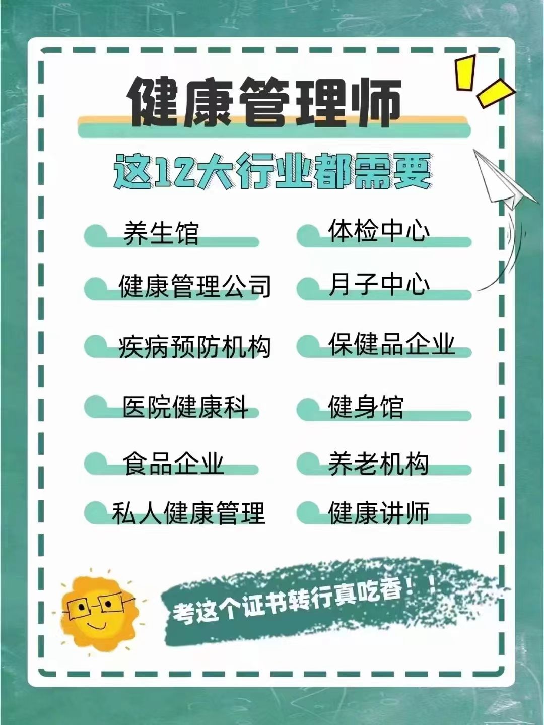 健康管理师可以从事医疗、疾病预防、社区健康管理、健康监测、健康评估、健康维护等相关工作,是营养师、心理咨询师、体检医生、预防医学医生、健康教育专家、医学信息管理人员的综合体。